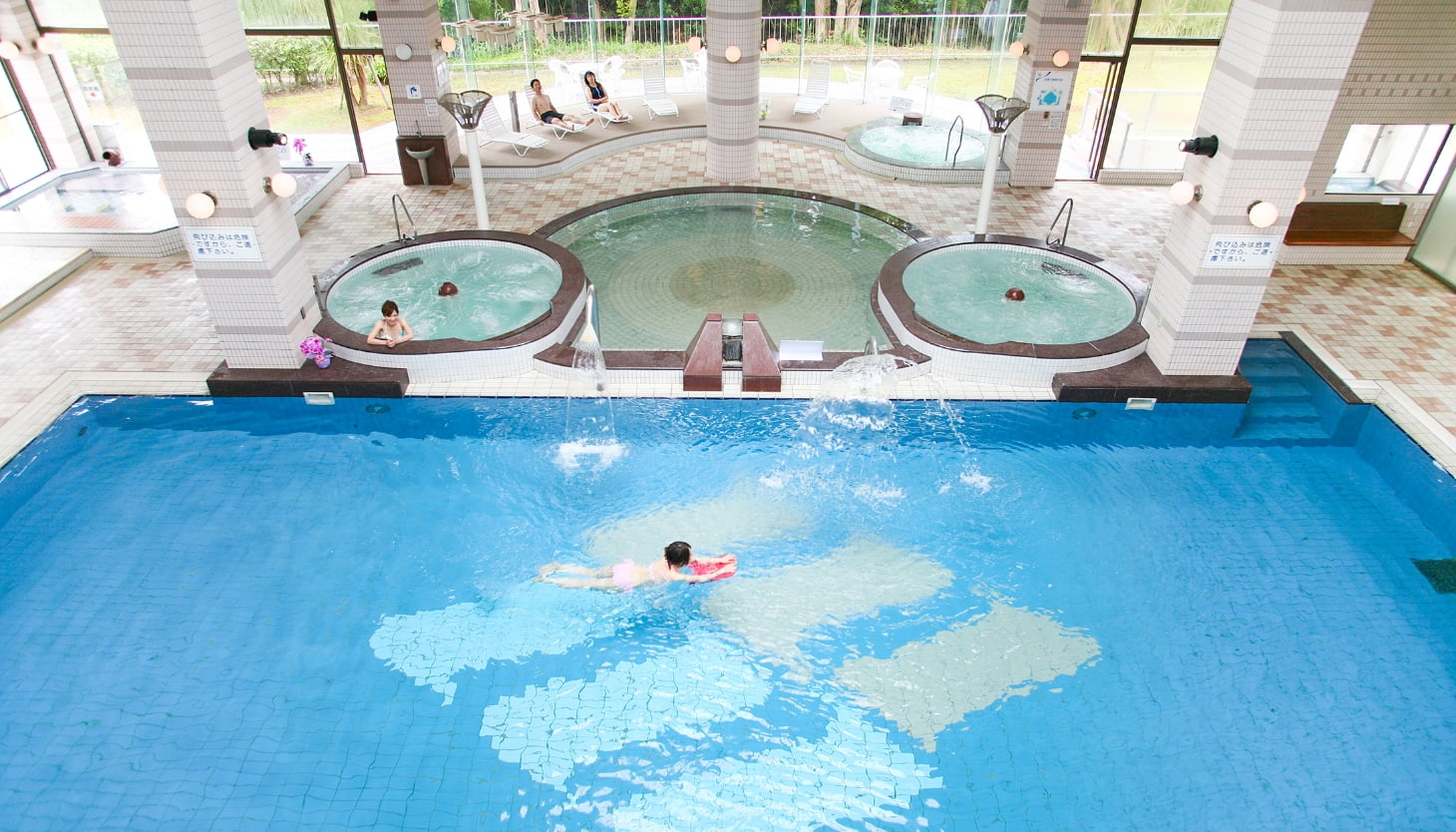 健康を⽬的としたお⾵呂の総合リゾート施設です。